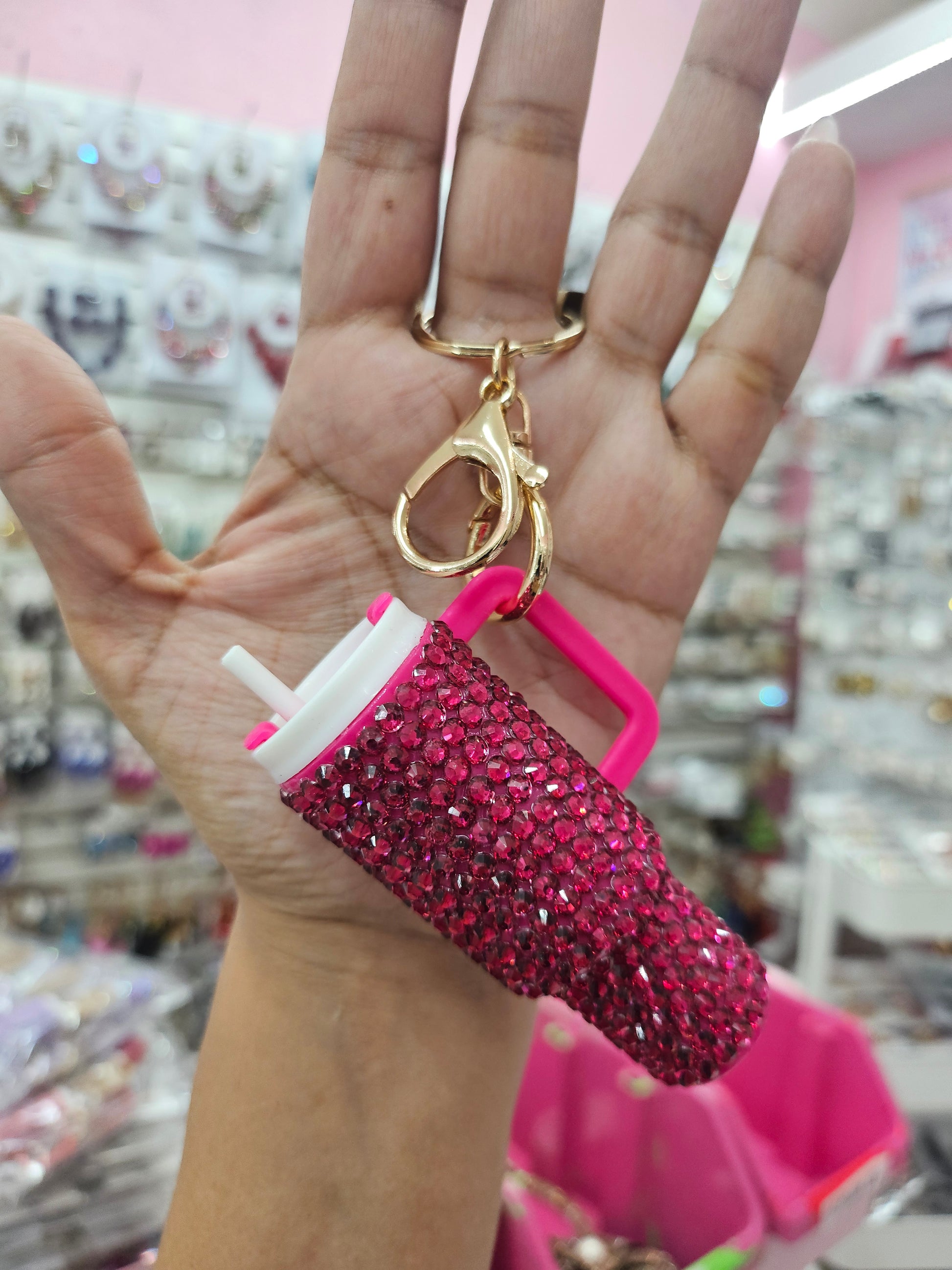 Hot pink rhinestone tumblr keychain