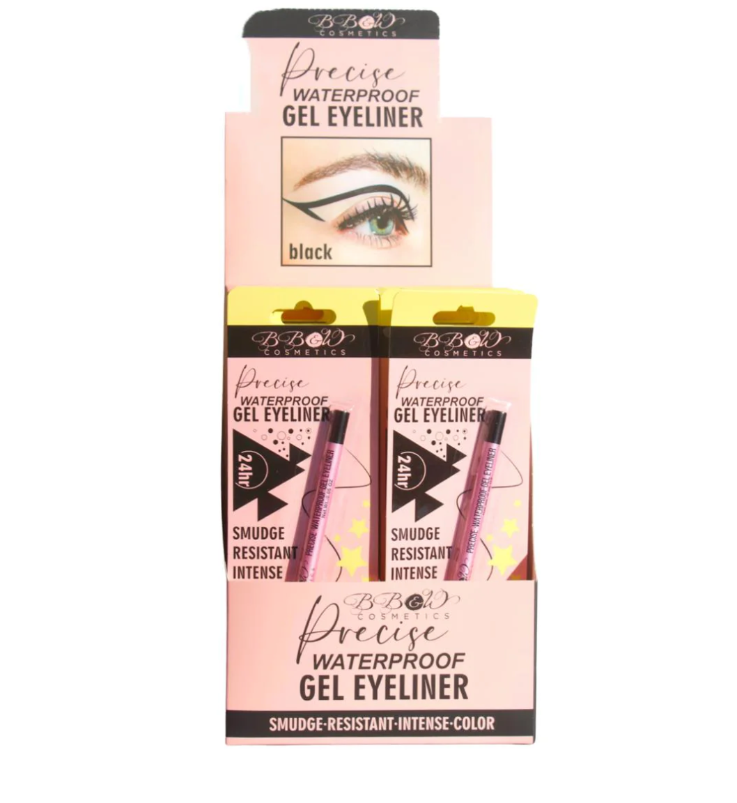 Precise Waterproof Gel Eyeliner provides long-lasting, waterproof definition for an all-day look. With its highly pigmented black gel formula and smudge-proof application, you can achieve precise, dramatic looks with ease. Perfect for all beauty looks, 24 pcs per display ensures you have plenty of product for all your needs.